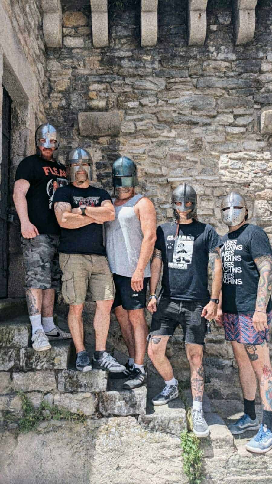 We’ve had this medieval aesthetic from the start. Fléau wasn’t made to tour, it was just a fun Covid project. So wearing medieval helmets looked like a cool idea at the time. Then we started playing shows and I guess these helmets are glued to us now.