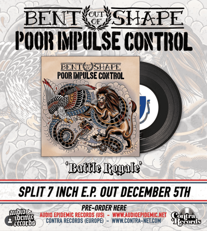 A new split EP between Poor Impulse Control and Bent Out Of Shape will be released in the coming days. It will come out in an edition of 300 copies on black vinyl, as a collaboration between Contra Records for Europe and Audio Epidemic Records for the USA.