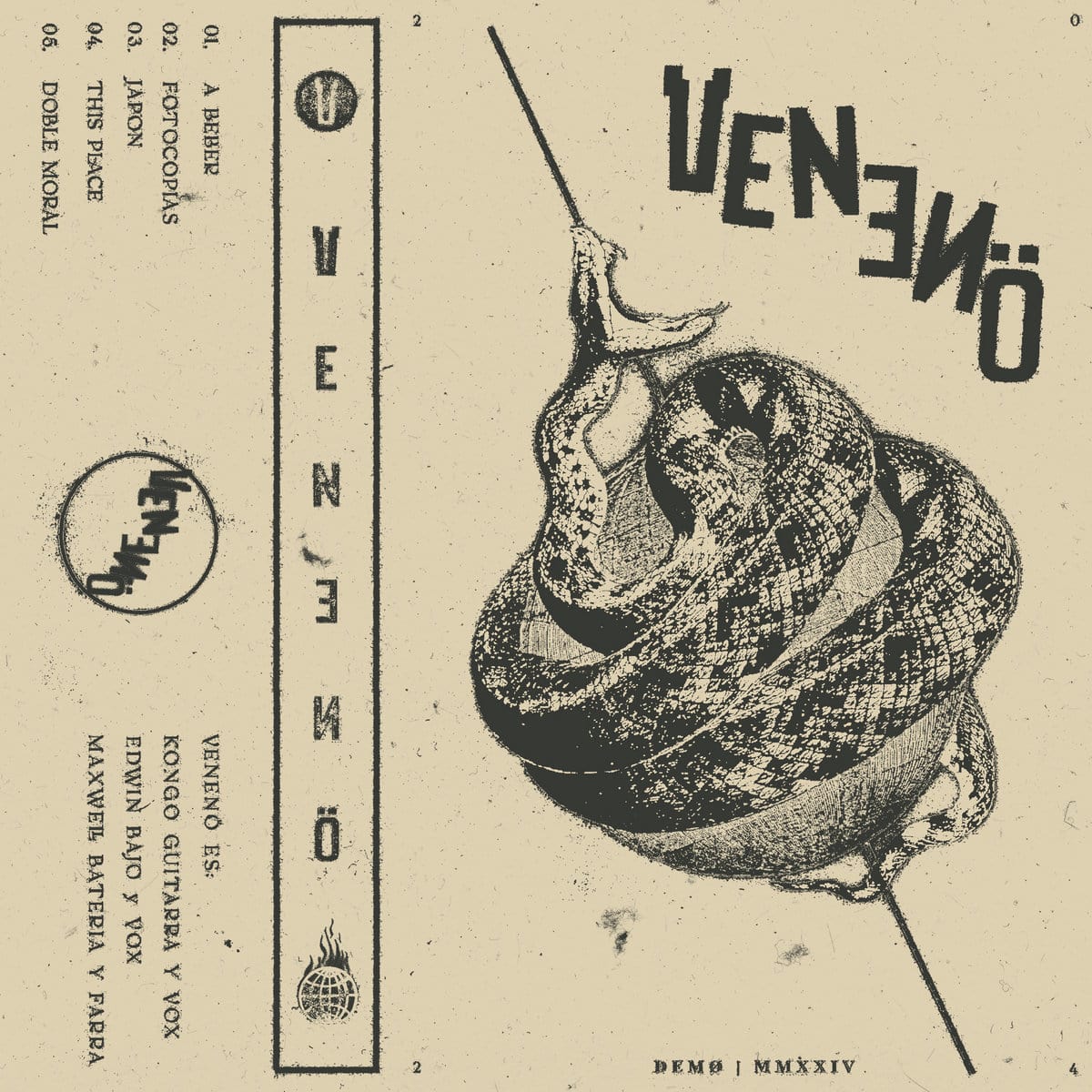 Stylově se jedná o punk / rock postavený na „smooth“ kytaře, sólových vyhrávkách a spíše středním či pomalejším tempu. Venenö nejdou cestou tvrdosti, rychlosti ani násilného míchání stylů, ale staví na chytlavých motivech napříč všemi skladbami. Velmi oceňuji, že materiál vyšel na 7″ formátu, který obsahuje pět písní. I když už dnes nehraju tak často jako selector, vždycky jsem měl raději menší formát s několika výraznými skladbami než dlouhou desku, ze které si člověk nakonec pustí jeden zásadní song. Vím, že náklady na vydávání 7″ v posledních letech výrazně vzrostly, ale pořád to vnímám i z téhle perspektivy a nechci to opomenout. EP vydal Mendeku Diskak, takže zpracování je kvalitní a doplněné hezkým, uměleckým obalem. Osobně bych uvítal i tištěné texty, abych si mohl ještě víc procvičit svou španělštinu – takhle chytám texty podle svých schopností přímo z nahrávky, protože většina skladeb je zpívaná právě ve španělštině.